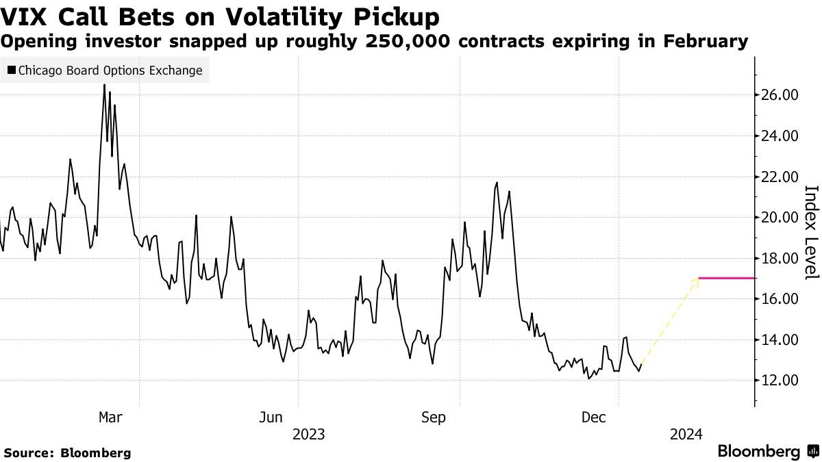 智通财经APP获悉,一名交易员大举买入了与芝加哥期权交易所波动率指数(VIX)挂钩的看涨期权,以应对下个月可能出现的股市波动加剧。据悉,这名交易员买入了约25万份VIX指数看涨合约,执行价为17,将于2月14日到期。该交易员为此支付了约1670万美元的溢价。而自去年11月初以来,VIX指数一直低于17。