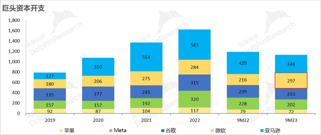b)而在企业投入的另外一个关键观察项——资本开支上,微软是唯一的例外——AI推动产业互联网成长逻辑的情况下,它在开发人力复用的情况下,只是增加了资本开支,也就是服务器/带宽等投入。