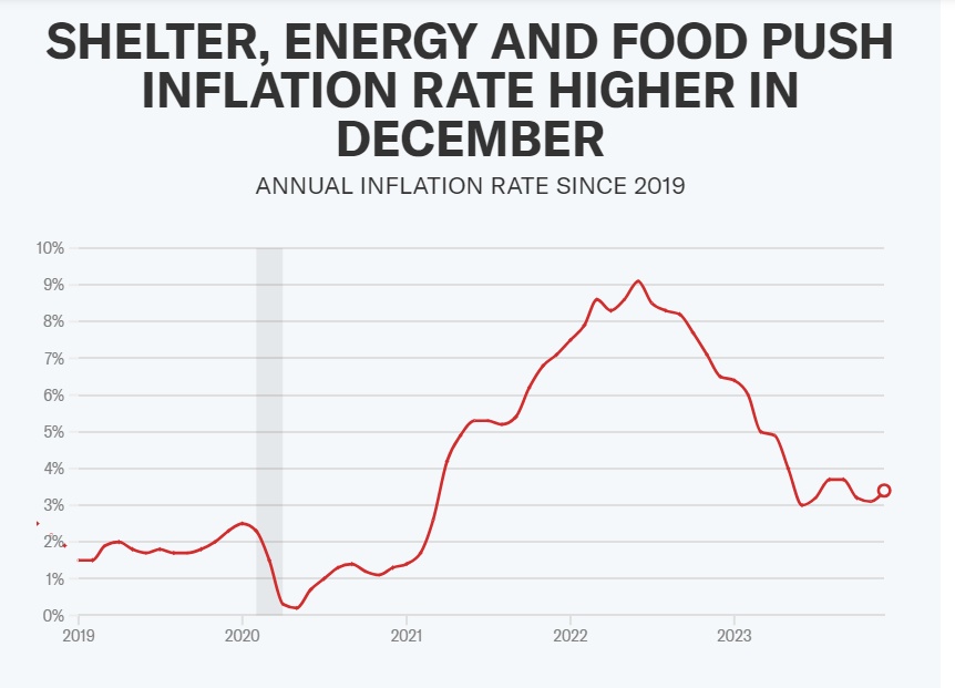 数据显示,在高利率环境下,美国劳动力市场仍然保持强劲增长趋势。美国12月季调后非农就业人口 21.6万人,为2023年9月来新高,高于预期17万人,前值修整后17.3万人。美国12月失业率为3.7%,低于市场预期3.8%,与上月保持一致。