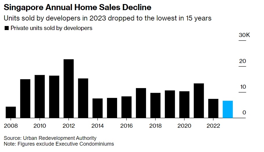 新加坡年度房屋销量下滑——2023年,开发商售出的房屋数量降至15年来最低水平