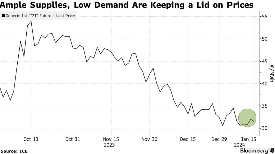 预计本周早些时候,欧洲地区最大的能源市场英国、法国和德国将出现严寒天气,这将提振天然气需求。然而,低迷的工业消费、高储气水平和欧洲西北部强劲的液化天然气流量可能会阻碍价格的上涨。