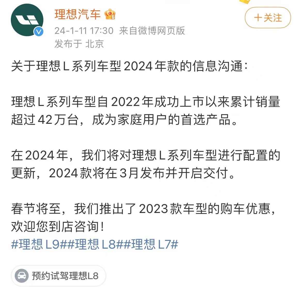 事实上,自奇瑞新能源在2023年末打响2024年价格战“第一枪”之后,已经有包括理想汽车在内多家车企参与到价格战中来。