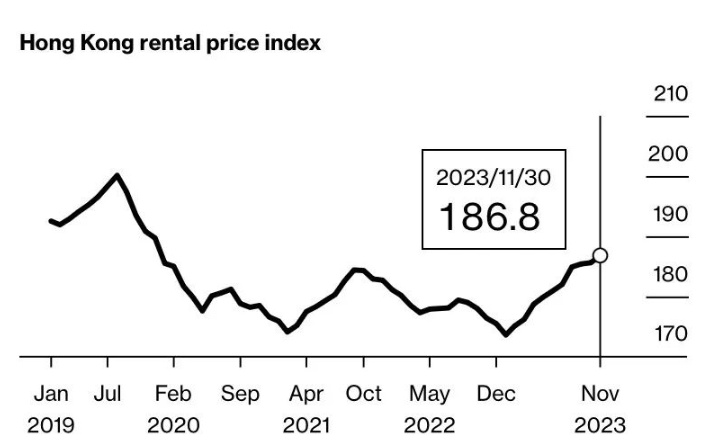 智通财经APP获悉,中国香港的租金正在迅速反弹。目前,香港住宅租金在截至11月连续10个月上涨后,处于四年来的最高水平,而Midland Realty预测今年平均增长10%。这与新加坡的竞争金融中心形成鲜明对比,新加坡的租约预计将下降。