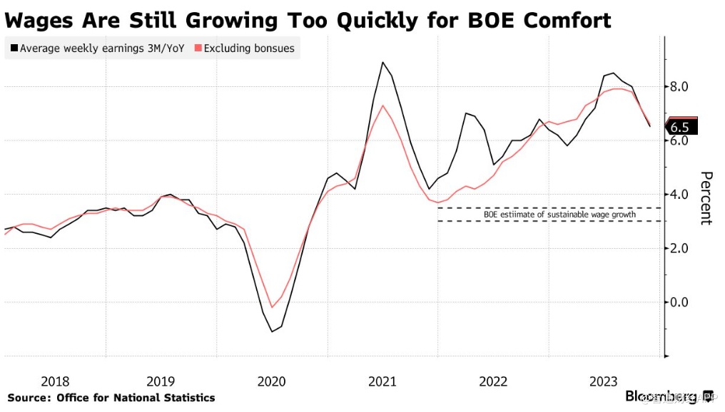 英国国家统计局经济统计主任 Liz McKeown表示:“虽然以现金计算的薪资年增长率仍然很高,但我们继续看到工资压力可能整体上有所缓解的迹象。”“然而,由于通胀仍在以更快的速度下降,实际收入继续增长。”