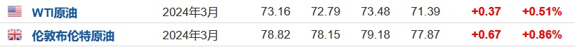 3.截至发稿,WTI原油涨0.51%,报73.16美元/桶。布伦特原油涨0.86%,报78.82美元/桶。