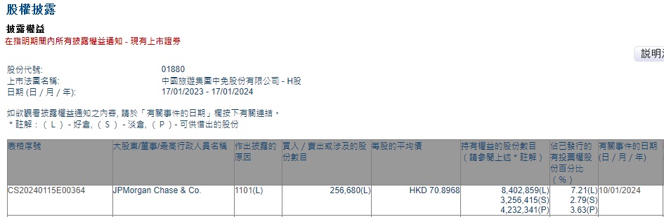 智通财经APP获悉,香港联交所最新资料显示,1月10日,小摩增持中国中免(01880)25.6680万股,每股作价70.8968港元,总金额约为1819.78万港元。增持后最新持股数目约为840.29万股,最新持股比例为7.21%。