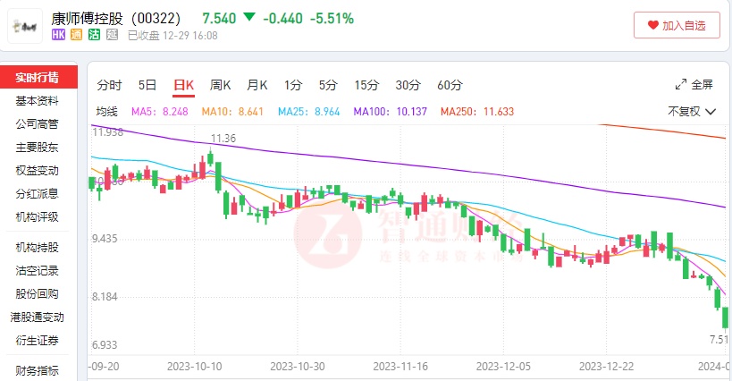 智通财经APP获悉,近期,康师傅股价连续下跌,1月17日,康师傅控股(00322)再度跌超5%,股价创2019年11月以来新低。