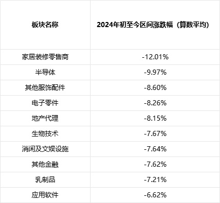 智通财经APP了解到,开年以来,家居装修零售商、半导体、其他服饰配件、电子零件、地产代理五个板块则为港股跌幅最大的细分领域。