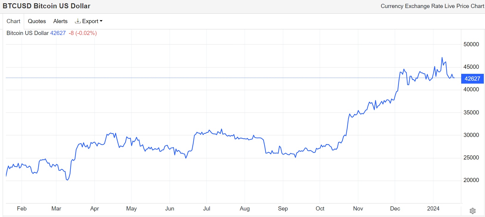 在2024年,6.9万美元这一比特币价格最高历史纪录很可能将被打破。一些业内高管坚称新一轮比特币牛市已经开始,主要基于两件重磅事件:分别是比特币“减半”事件,以及比特币交易所交易基金(比特币现货ETF)在美国首次获得批准。