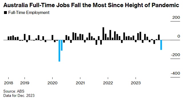 尽管月度数据波动较大,但结果表明,在自2022年5月以来加息4.25个百分点之后,人们期待已久的劳动力市场放松可能会出现。周四的报告和第四季度通胀数据将有助于澳大利亚央行在2月5日至6日的会议上做出政策决定。