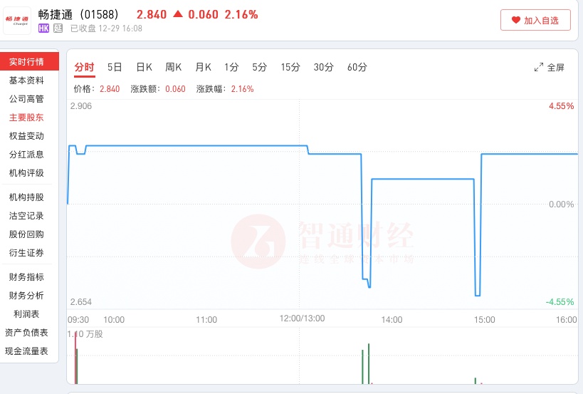 公司早盘涨幅超2.5%,午后跌至3.96%,截至收盘报2.84港元,涨幅约2.16%,总市值9.25亿港元。