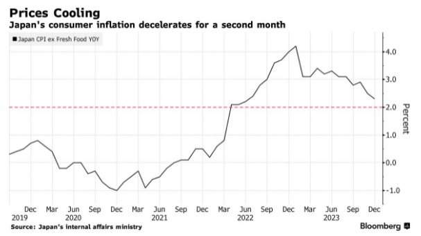 周五的数据也进一步表明了日本由成本推动的通胀压力正在缓解,这与日本央行预测的情况一致。此前的数据显示,该国12月生产者价格指数(PPI)与上年同期持平,为近三年来的最低水平。同月,东京消费者价格涨幅降至一年多来的最低水平。