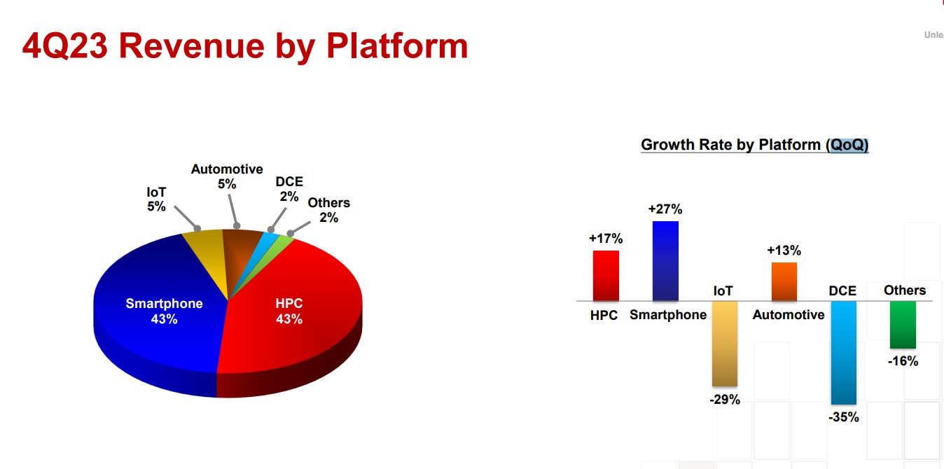 值得注意的是,台积电Q4以高性能服务器领域AI芯片和PC端芯片为主的HPC业务,以及智能手机业务营收均实现环比大幅增长。此外,营收占比仅5%的汽车芯片同样实现环比反弹。从全球代工巨头台积电营收占比规模来看,HPC业务以及智能手机业务仍然占据大部分比例,反映出这三大类型芯片——AI芯片、PC芯片以及智能手机芯片可谓占全球芯片行业绝大部分库存。从台积电财报来看,第四季度三大类型芯片需求实现强劲反弹,暗示芯片行业踏入复苏周期。