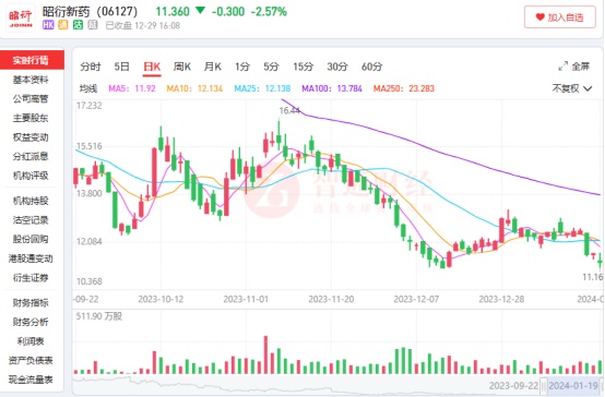 实际上,从2023年1月中旬起,昭衍新药的股价就一直处在下跌状态,叠加其在2023年中报和前三季度财报中披露的净利润同比分别下滑75.58%和48.17%的惨淡业绩,昭衍新药的股价在加速下跌中度过了整个2023年,并且2024年其股价止跌迹象也不明显。