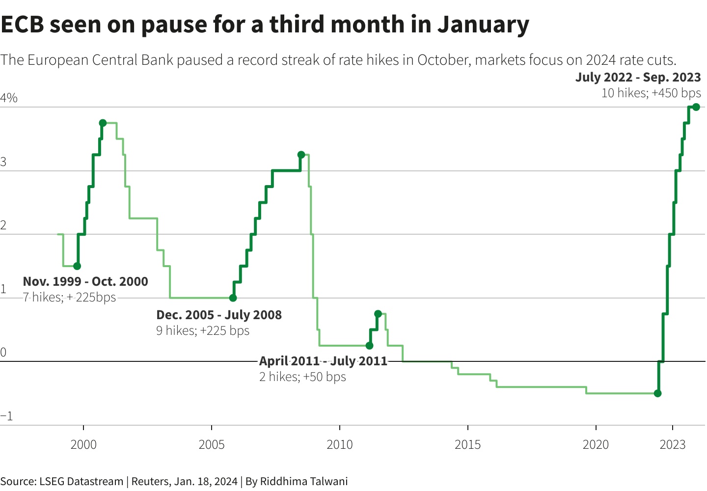 欧洲央行将于1月25日公布利率决议。欧洲央行在去年12月的会议纪要中有一条引人注目的措施,表示要保持谨慎,但同时暗示,鉴于经济仍存在高度不确定性,目前不排除任何可能性或许是明智的。欧洲央行表示:“人们普遍认为,重要的是不要在会后沟通中迎合市场预期。”“鉴于目前存在的不确定性,在判断市场预期时应保持一定的谦逊。”