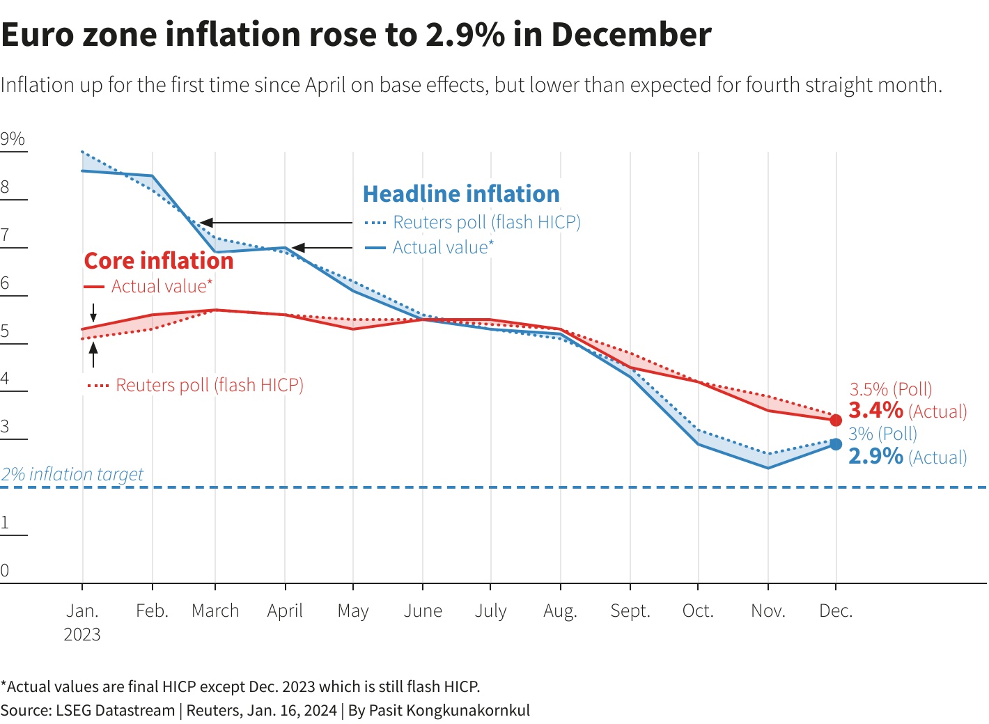 当然,有关实际政策利率的讨论仍取决于通胀方面的进展。人们有理由担心,因红海局势造成的供应链中断可能会在近期再次刺激通胀上涨。但同样值得注意的是,如果名义政策利率不下调,通胀的回落将推动实际政策利率变得更加严格,而这肯定不是欧洲央行在目前的关键时刻所希望看到的。