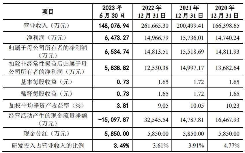财务方面,于2020年度、2021年度、2022年度以及截至2023年1-6月,中国瑞林实现营业收入约为人民币 16.64 亿元、20.05 亿元、26.17 亿元和 14.81 亿元;同期,公司实现净利润分别为约人民币1.47 亿元、1.57 亿元、1.50 亿元和 0.65 亿元。