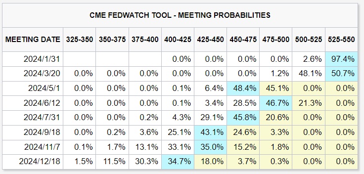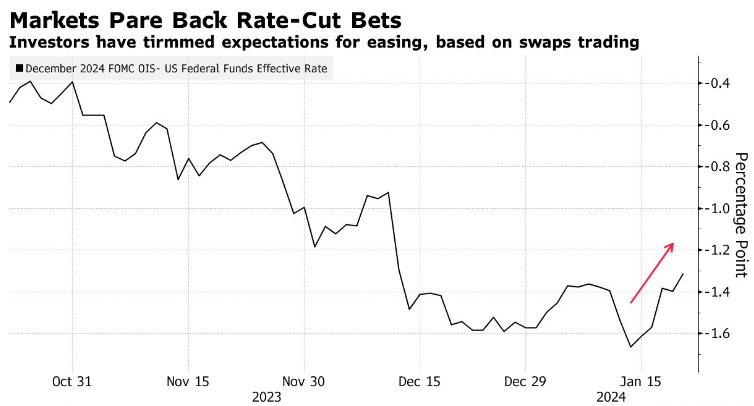 尽管如此,基金经理们仍在争论美联储何时可能会缩减其鹰派政策。投资者面临的一个关键挑战将是评估加息周期的滞后影响。交易员们正在迅速重新定价他们的降息预期,美联储第一季度降息25个基点的可能性仅降至50%左右,而就在几周前,市场还几乎完全定价了美联储3月降息的可能。
