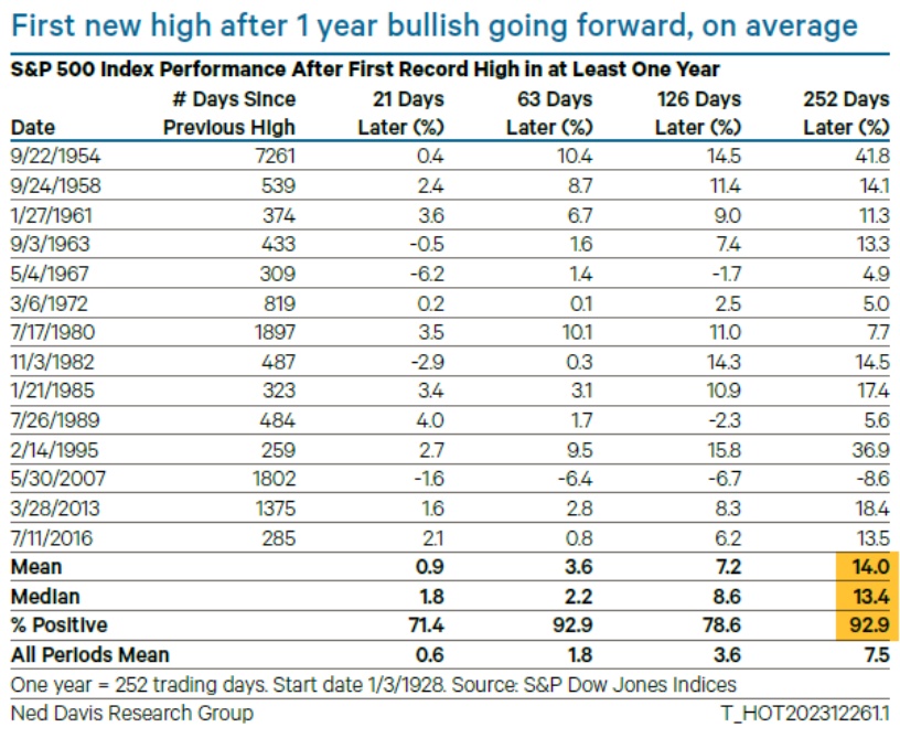 不过,历史表明,未来可能还会有进一步的增长。Ned Davis Research首席美国策略师Ed Clissold表示,截至周四,标普500指数连续512个交易日没有创下历史纪录,这是自1928年以来的第六长纪录。以史为鉴,在创出新高一年后,该指数14次中有13次上涨,涨幅中位数为13%。