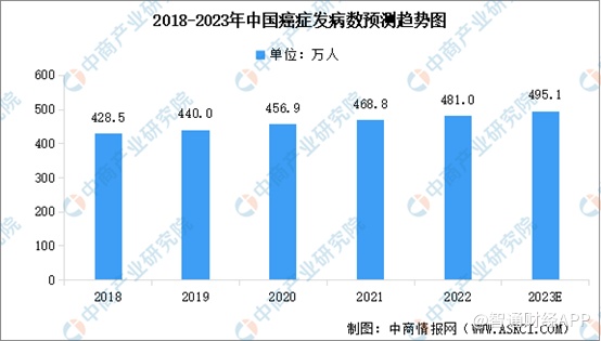 近年来中国肿瘤患者发病率持续提升,根据弗若斯特沙利文数据,2022年全国癌症发病数达到约481万人,2018年至2022年的年均复合增长率为3.0%。2022年中国新增确诊癌症患者及癌症相关死亡病例分别约占全球新发癌症病例的23.8%及癌症相关死亡病例的26.9%。