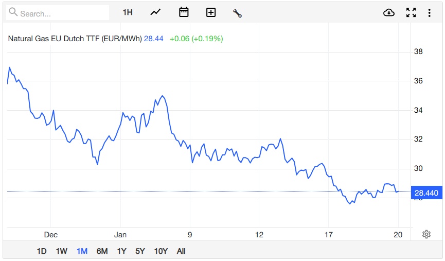 智通财经APP获悉,一股寒流在本月席卷了欧洲大部分地区、再加上运送燃料的船舶因红海紧张局势改变航线,欧洲天然气价格本应应声上涨。但事实上,欧洲天然气价格一直在下降。即使还没到让欧洲解除警报的时候,但这是一个强烈的信号,表明导致能源账单飙升、通胀升至多年高点的最糟糕时期已经过去。