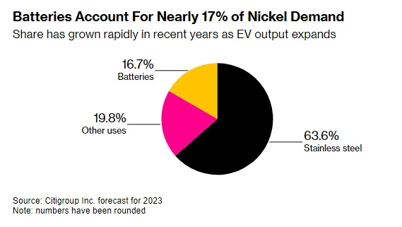 镍的困境反映了其他电池材料市场的动态,在供应意外强劲增长后,这些市场的价格出现了下跌。随着电动汽车制造商采用不使用镍和钴的电池,镍和钴的需求也受到了影响。