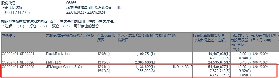 智通财经APP获悉,香港联交所最新资料显示,1月16日,小摩减持福莱特玻璃(06865)413.6822万股,每股作价14.8818港元,总金额约为6156.34万港元。减持后最新持股数目约为5443.09万股,最新持股比例为12.09%。