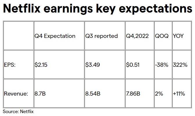 智通财经获悉,流媒体巨头奈飞(NFLX.US)将于周二美股盘后公布第四季度财报。在打击密码共享和执行其广告层级增长战略之后,该公司股价在12个月内上涨了50%以上。