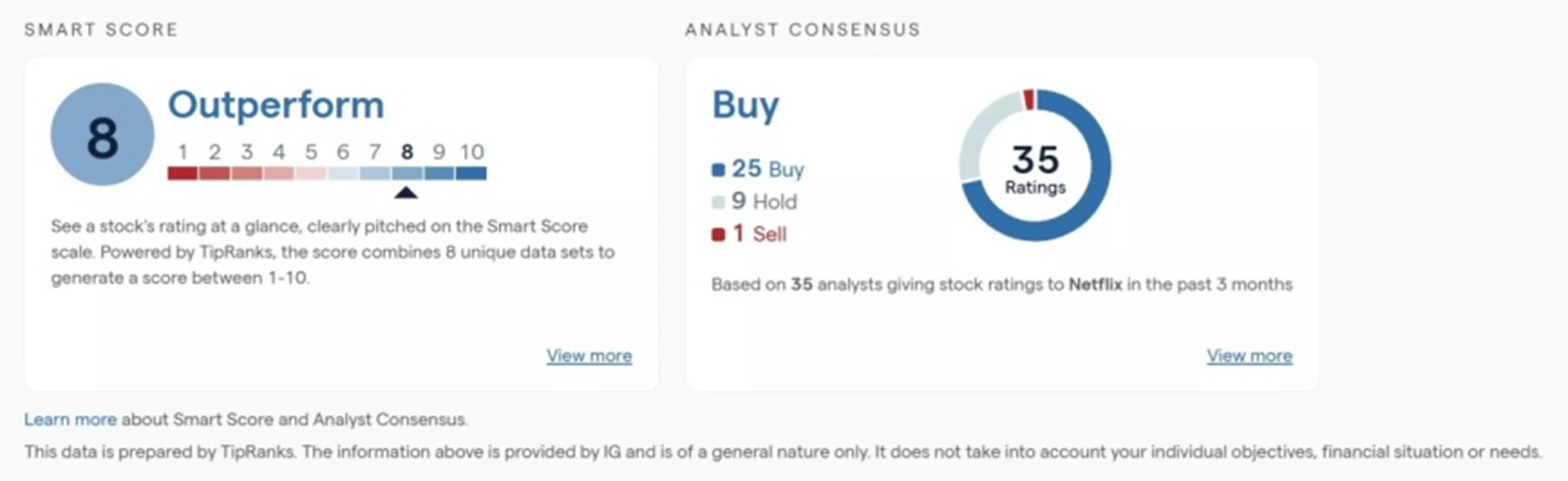 目前,奈飞的股价徘徊在500美元的关键门槛附近,自2022年7月以来保持了明显而有效的上升趋势,价格交易高于所有主要移动平均线。它在过去18个月的出色表现赢得了分析师的赞赏——在分析师评级平台TipRanks上获得8分(满分10分),加上在过去3个月里,35位全球分析师中有25位给予了买入评级的强烈支持。