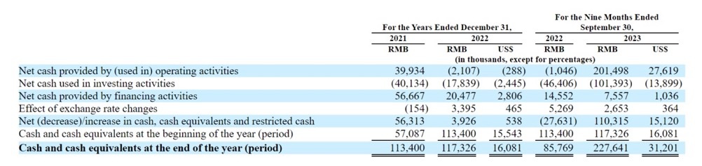 而到了2023年前九个月,公司经营活动提供的净现金由负转正,主要由于项目保证金的其他应收款大幅减少8950万元人民币,以及应付账款增加2660万元人民币。