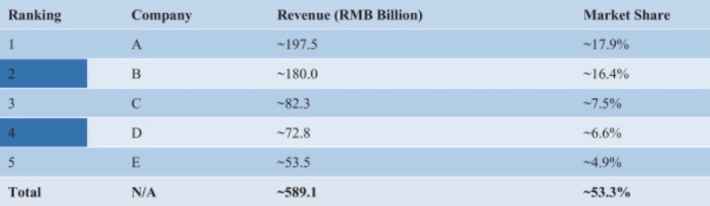 规模增速的缩窄也意味着竞争的加剧,根据Frost & Sullivan的统计,目前,整合营销行业的市场份额主要集中在几个少数玩家的手中。2020年,前五大领先公司占据了50%以上的市场份额。