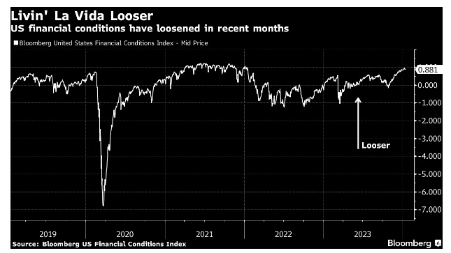 尽管利率处于数十年来的最高水平,但随着股市飙升至新高,信贷息差缩小,美国的金融状况仍相对宽松。