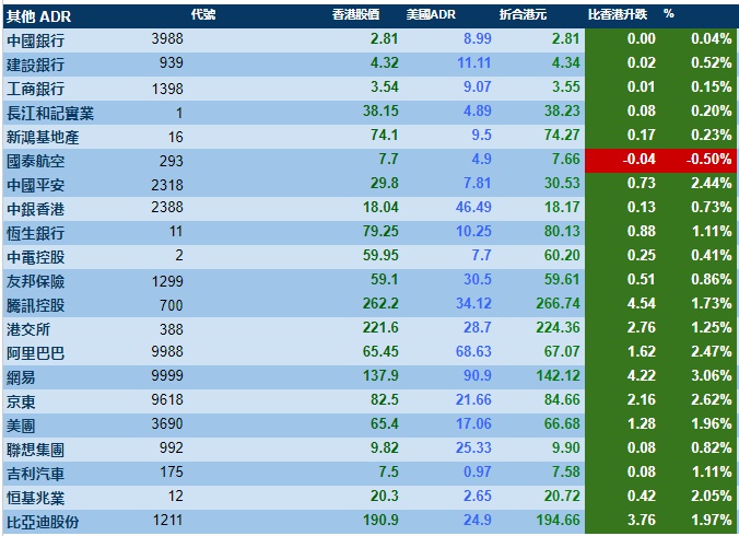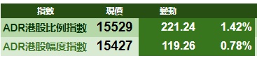 智通财经APP获悉,周一美股三大指数集体收涨,港股ADR指数上涨,按比例计算,收报15529点,较香港收市升221.24点或1.42%。