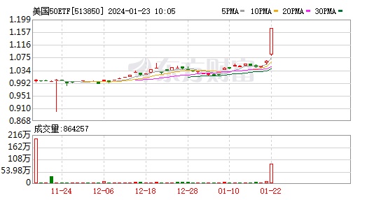 智通财经APP获悉,1月22日,跨境ETF再度疯涨,其中易方达美国50ETF异动涨停,创上市以来新高,收涨9.97%领涨ETF市场,收盘价为1.169元,相对于当日的基金份额参考净值(IOPV)溢价幅度达到10.03%。1月23日,易方达基金发布公告称,易方达美国50ETF二级市场交易价格波动较大,为了保护基金份额持有人的利益,该基金将于1月23日开市起至当日10:30停牌,自1月23日10:30复牌。