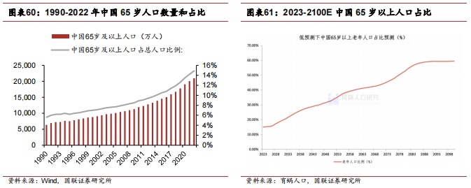 另据统计局公布的最新数据显示,2023年我国65岁及以上人口21676万人,占全国人口的15.4%,这一数据在过去几年间快速提升。而据育蜗人口预测,随着第二、三轮婴儿潮人口逐渐进入老龄阶段,叠加低生育率影响,老龄化趋势将加速,预计到2032年左右进入老年人口占比超过20%的超级老龄化社会。