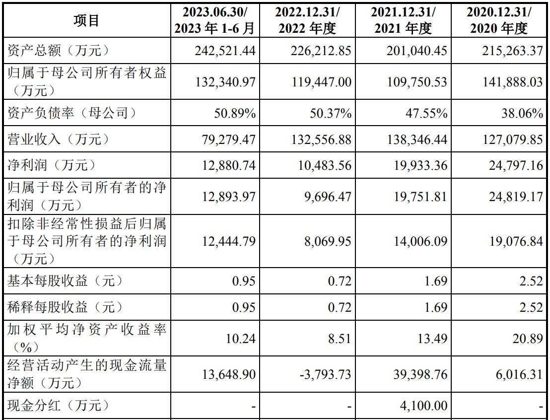 财务方面,于2020年度、2021年度、2022年度以及2023年上半年,瑞立科密实现营业收入分别约为12.71亿元、13.83亿元、13.26亿元以及7.93亿元;同期,净利润分别约为2.48亿元、1.99亿元、1.05亿元以及1.29亿元。