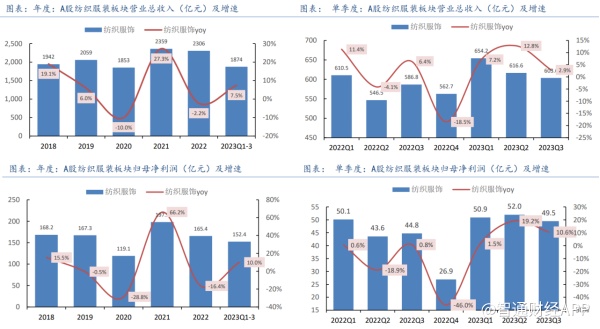相关上市公司的业绩也从另一方面佐证了行业的良好回暖态势。智通财经APP了解到,2023年前三季度,A股纺织服装板块收入、利润增速双双同比转正,单季度业绩表现相比去年也有明显改善,呈现出利润端比收入端更快修复的势头。