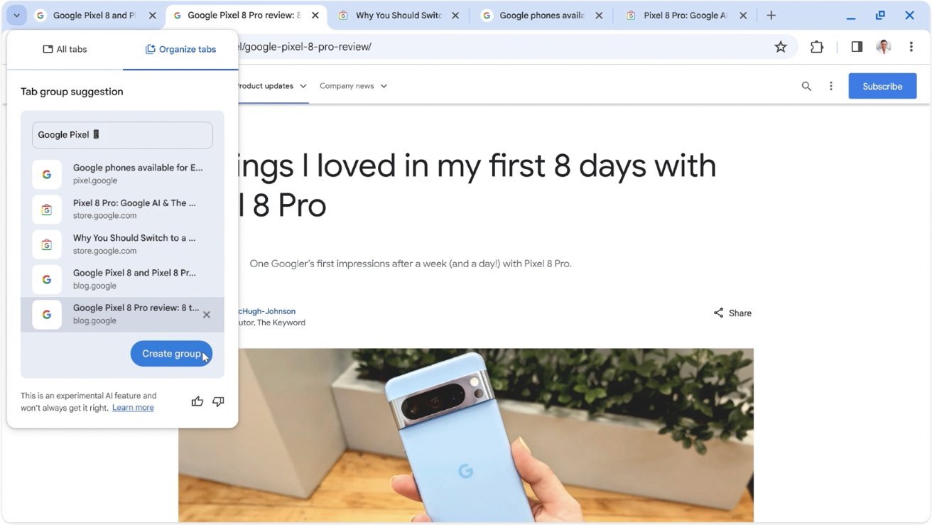 标签管理器和主题创建器将在未来几天内向美国区域的Chrome浏览器用户推出,而写作助手功能预计将在下月的Chrome浏览器更新中加入。用户可以在Chrome浏览器的“设置”部分激活这些实验性功能,方法是点击三点菜单并导航到“实验性人工智能”页面。