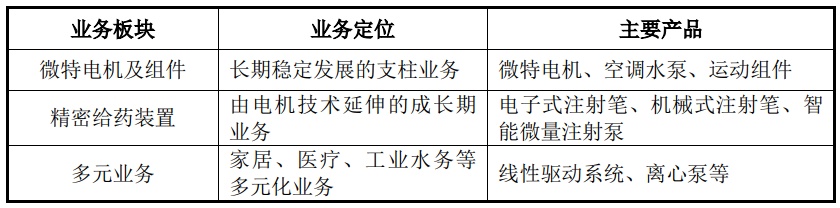 招股书披露,华阳智能主营业务为微特电机及应用产品的研发、生产和销售。公司长期服务于家电行业龙头企业,是美的、海信、海尔、格力、奥克斯等知名家电集团的主要微特电机及组件供应商。公司的核心业务体系包括以下板块: