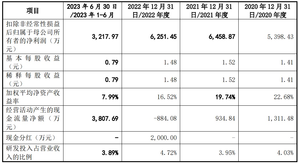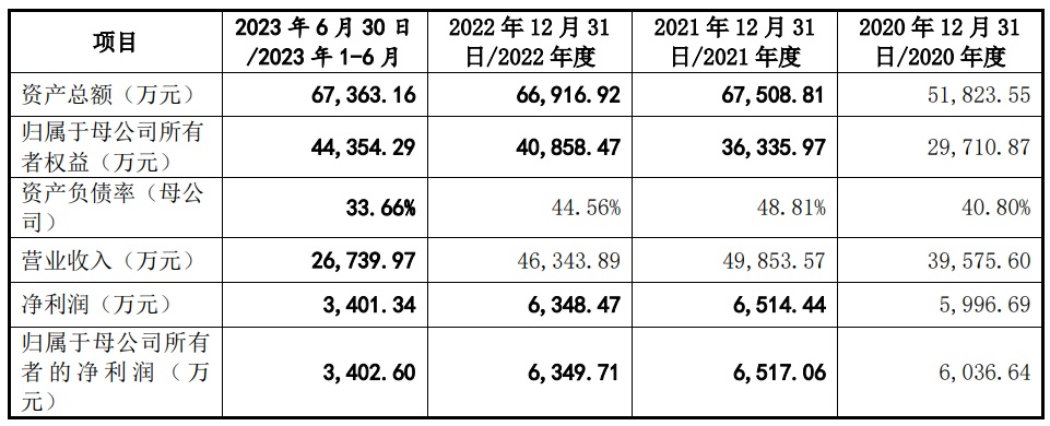 财务方面,于2020年度、2021年度及2022年度,公司实现营业收入分别约为3.96亿元、4.99亿元、4.63亿元。公司净利润分别约为5996.69万元、6514.44万元、6348.47万元人民币。