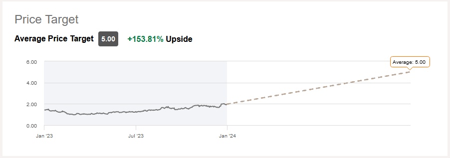 丹尼森矿业的股价在2023年累计上涨近54%,今年迄今为止上涨超11%。华尔街分析师对丹尼森矿业的平均评级为“买入”,平均目标价为5美元,较该股当前股价有超150%的上涨空间。