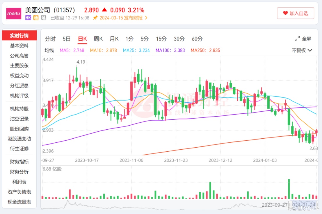 受此影响,美图股价于1月22日盘中冲高至2.9港元,最大涨幅7.4%。此后两个交易日,美图累计上涨超过9%。