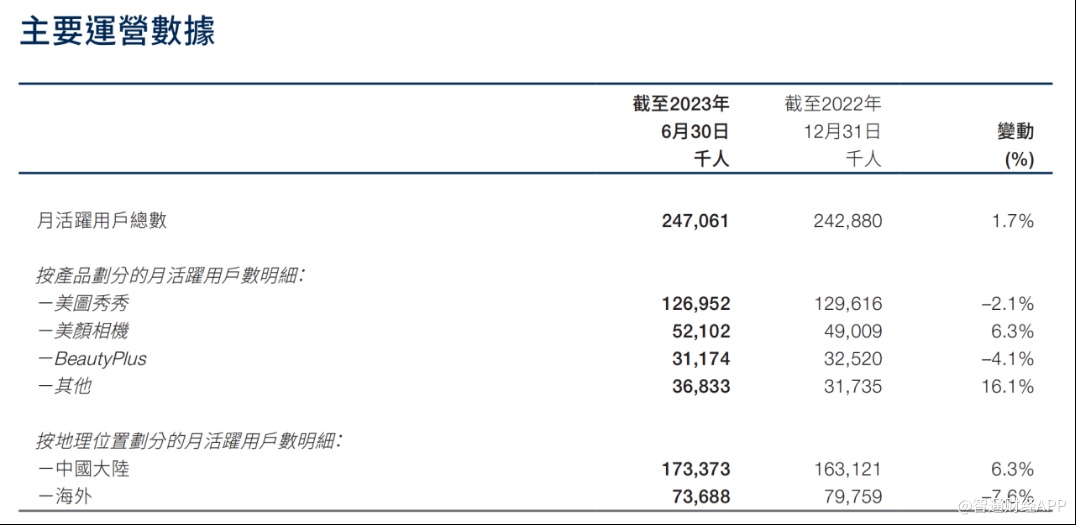 2023年上半年,美图将VIP订阅业务、互联网增值服务及SaaS相关业务合并到影像与设计产品业务。上半年,公司影像与设计产品业务实现收入6.02亿元,同比增长62.3%。