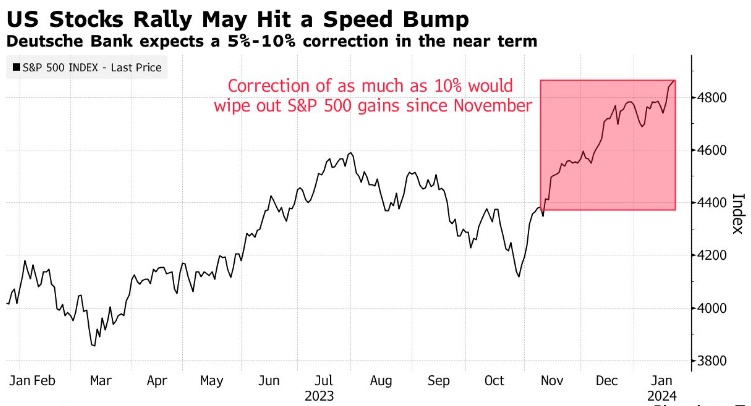 智通财经获悉,德意志银行表示,随着美国经济放缓,美股可能在未来几个月出现调整。德意志银行全球首席投资官Christian Nolting称,今年美国经济的年增长率可能为0.8%,低于2023年2.3%的预期。他说,随着这种减速渗透到股市,短期内可能会出现较当前水平下跌5%至10%的情况。Nolting称:“美国根本没有讨论过经济衰退。对股市而言,今年将迎来一次现实检验。”