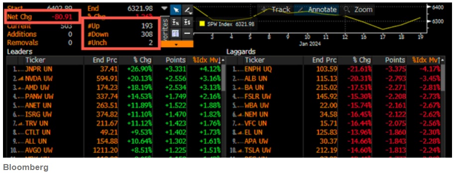 与此同时,特斯拉在2024年拉低标普500指数11.95点,苹果拉低标普500指数1.7点。在标普500指数成份股中,今年以来只有193只股票上涨,308只下跌,还有2只持平。这就是标普500等权重指数今年迄今下跌1.26%的原因。