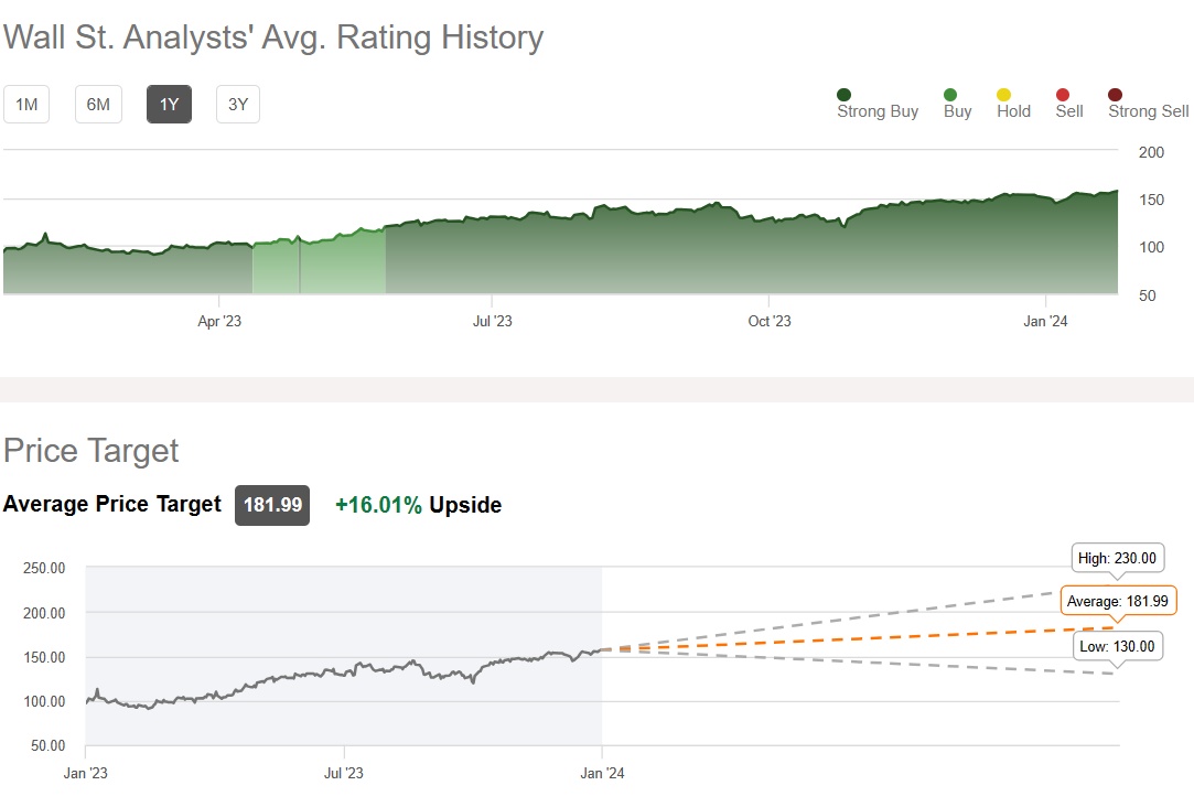 投资研究平台 Seeking Alpha汇编的预期数据显示,华尔街分析师们予以亚马逊的共识评级为“强力买入”,平均目标价则为181.99美元,意味着未来12个月潜在涨幅达16%,最高目标价则高达230美元。