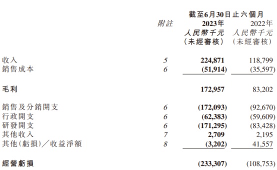不难看到,不论是销售费用还是研发费用,二者的同比增长率均远高于当期的公司营收增长率,这也最终导致了沛嘉医疗在2023年上半年亏损较上年同期进一步扩大至2.12亿元,同比增长130.55%。
