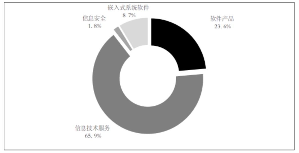 信息技术服务收入较快增长。2023年,信息技术服务收入81226亿元,同比增长14.7%,高出全行业整体水平1.3个百分点,占全行业收入比重为65.9%。其中,云服务、大数据服务共实现收入12470亿元,同比增长15.4%,占信息技术服务收入的15.4%,占比较上年同期提高0.5个百分点;集成电路设计收入3069亿元,同比增长6.4%;电子商务平台技术服务收入11789亿元,同比增长9.6%。