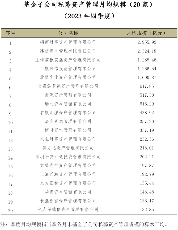 智通财经APP获悉,1月25日,中国证券投资基金业协会发布2023年四季度各项资管业务月均规模数据。数据显示,2023年第四季度,易方达继续蝉联非货币公募基金榜首非货币公募基金月均规模为9695.12亿元,华夏基金、广发基金、富国基金、招商基金、嘉实基金等5家机构分别以7580.55亿元、6608.84亿元、5953.74亿元、5578.57亿元、5102.12亿元的月均规模紧随其后。
