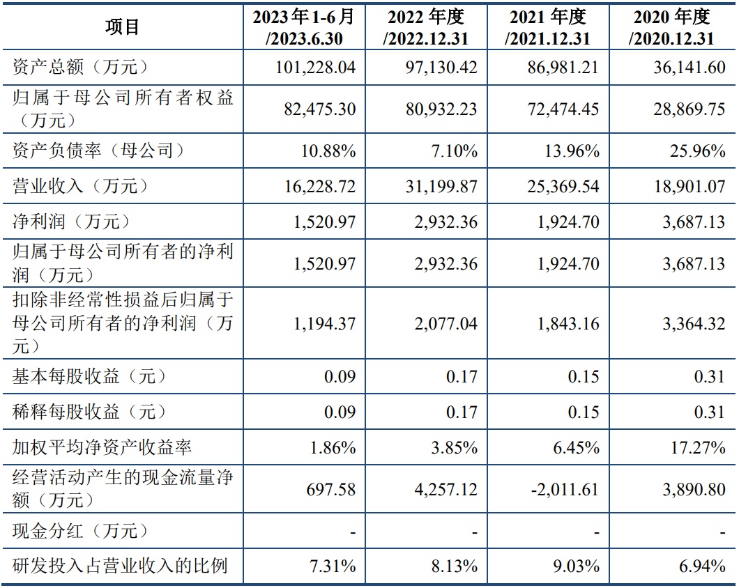 财务方面,于2020年度、2021年度、2022年度以及2023年上半年,和美精艺实现营业收入分别约为1.89亿元、2.54亿元、3.12亿元以及1.62亿元;同期,净利润分别约为3687.13万元、1924.7万元、2932.36万元以及1520.97万元。